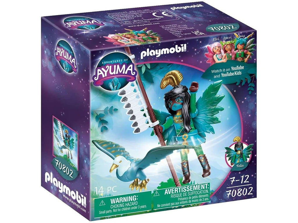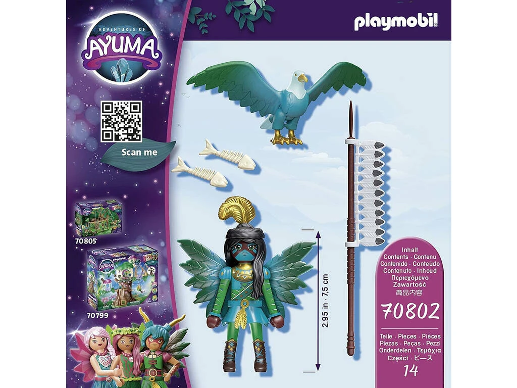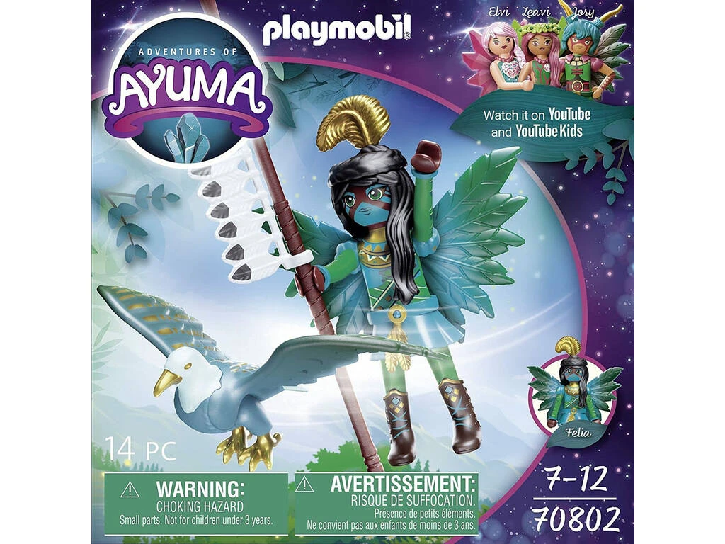 Incluye: 1 figura Felia de Playmobil Ayuma, 1 águila animal del alma, 2 espinas de pescado y 1 accesorio para la figura.